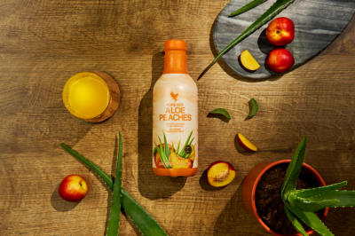Forever Aloe Peaches84,3% Aloe-Vera-Gel vereint mit demsüßen Geschmack von Pfirsichenenthält über 84% reines Aloe-Vera-Gelmit natürlichem Pfirsichpüreehoher Vitamin-C-Gehaltohne Zusatz von Konservierungsstoffen